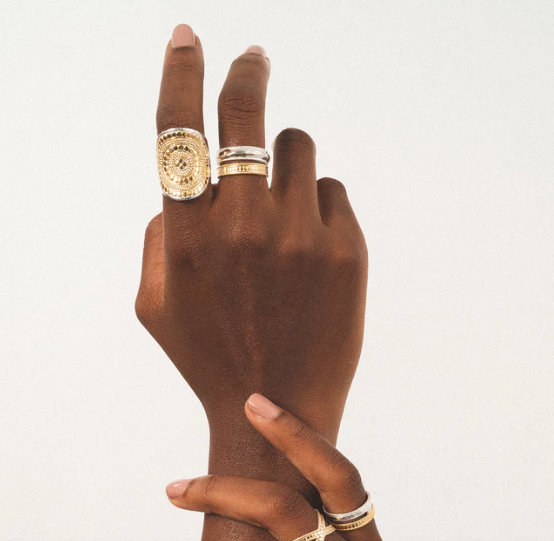 This iconic design is created entirely by hand—each dot hand-placed on the silver band. A bold statement ring infused with blessings of love and gratitude by our artisans. Gold Plated with Sterling silver