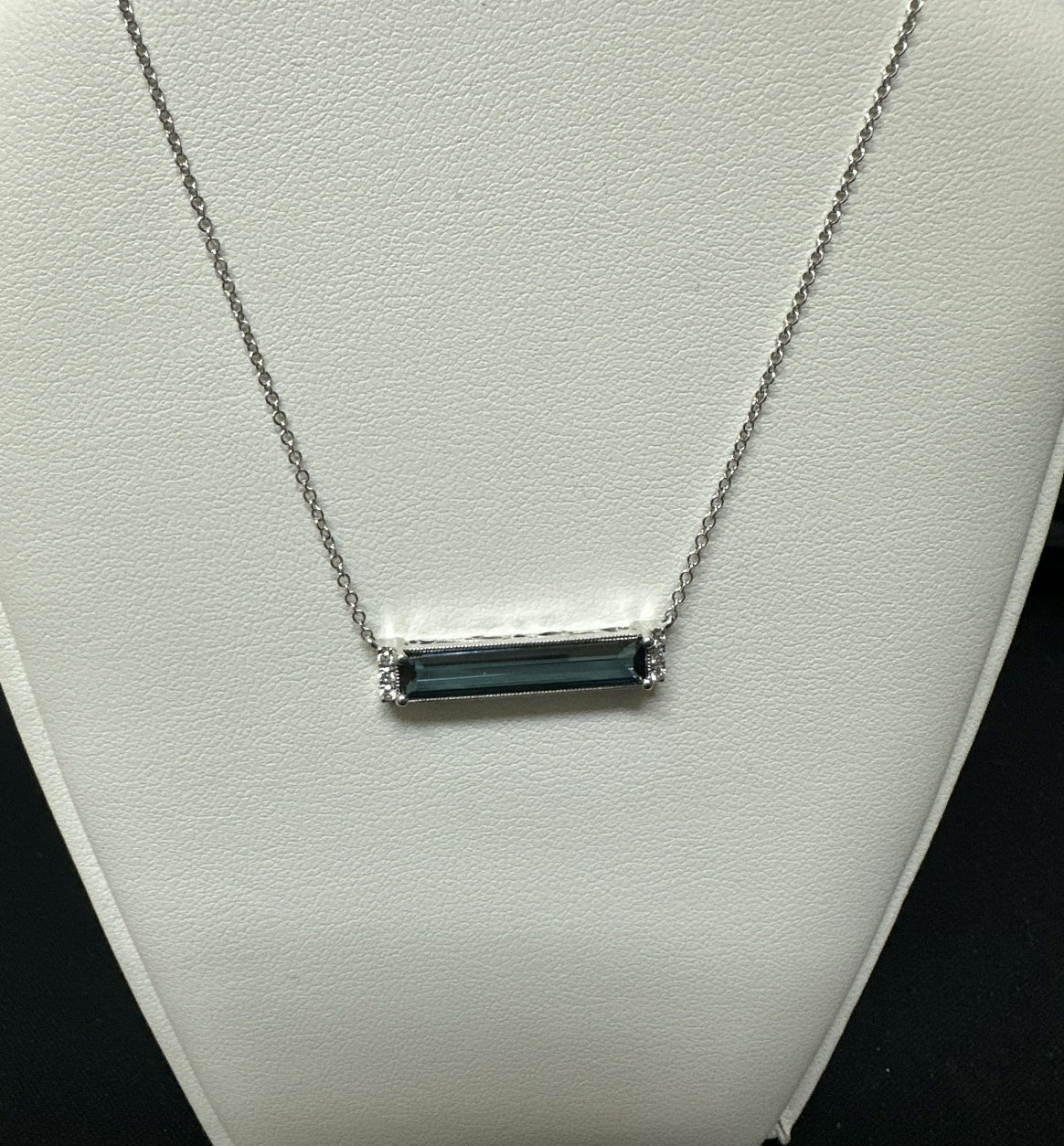 Make a bold statement with this stunning 18K white gold necklace, featuring a mesmerizing London Blue Topaz centerpiece. Crafted in luxurious 18K white gold, this necklace showcases a brilliant 2.93-carat London Blue Topaz, perfectly complemented by sparkling diamonds. Making it the ideal accessory for any special occasion or everyday luxury.