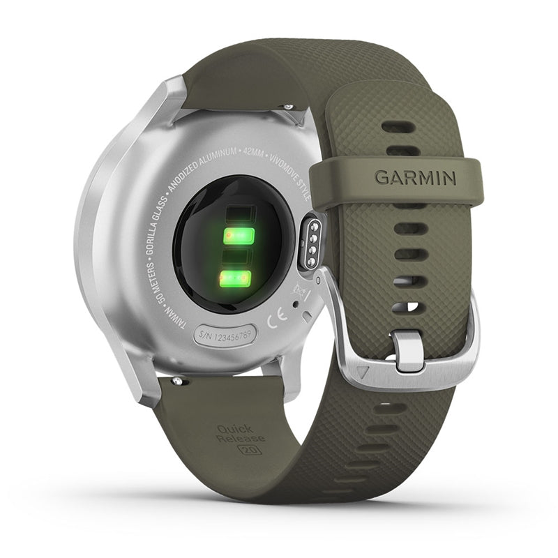 Silver Aluminum Case with Moss Silicone Band, a stylish analog watch design with a smart twist.
