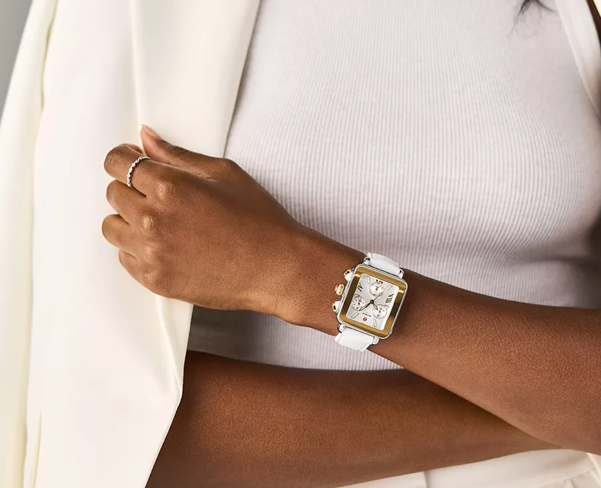 Michele Deco Sport Chronograph Gold-Plated White Silicone Watch MWW06K000069