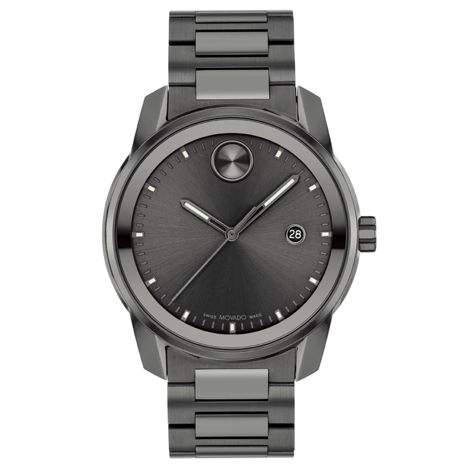 BOLD Verso, 42 mm gunmetal ion-plated stainless steel case and bracelet with gunmetal metallization. Features a gunmetal-toned dial, Swiss Super-LumiNova® accents, and date window detailing.