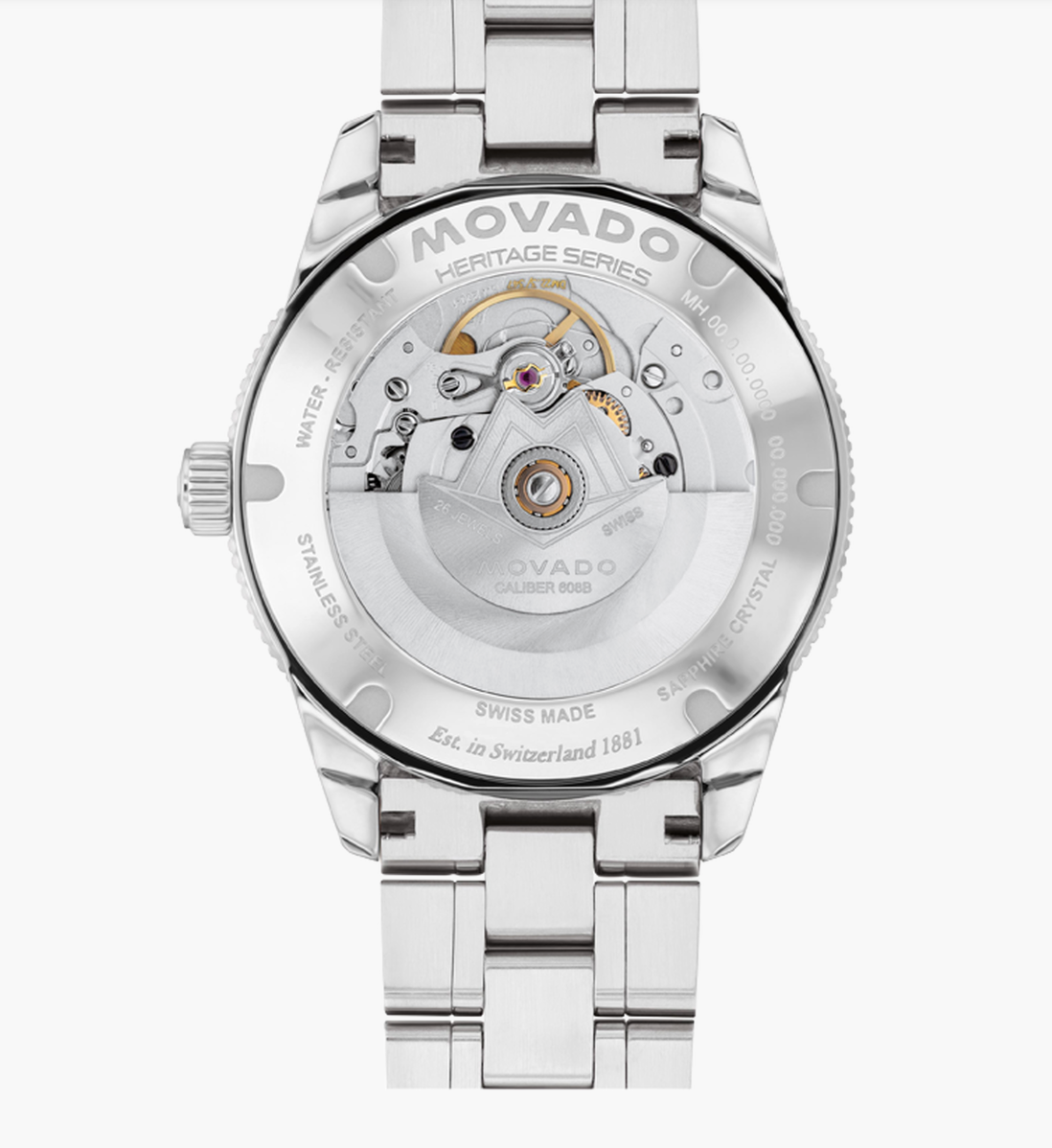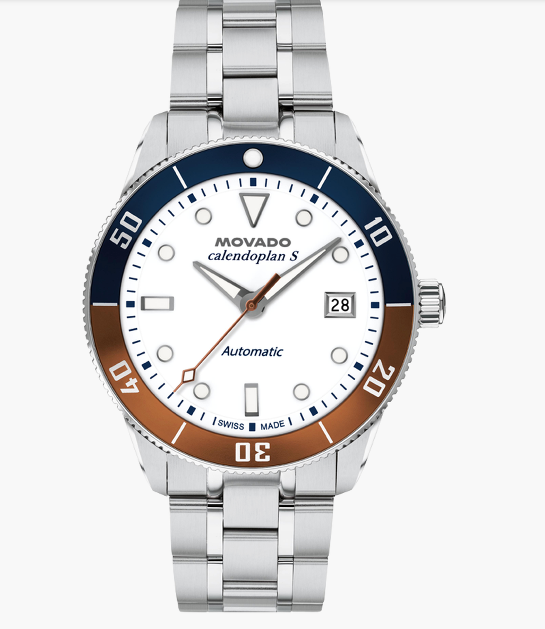 A Swiss made automatic movement drives this watch, powered by the motion of your wrist.