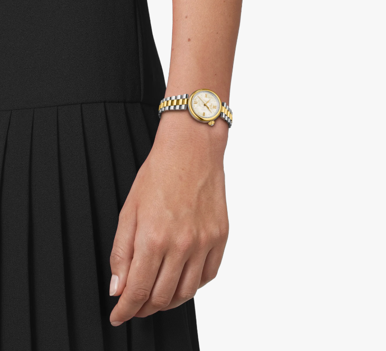The defining features of this collection include the domed case, reminiscent of a finely cut gem. Designed with both comfort and durability in mind, this watch captivates with its beauty and is built to stand the test of time. Its End-of-Life quartz battery ensures the watch will let you know when it’s time for a change, so you’re never caught off guard. The quartz movement, perfected by Tissot, delivers unmatched reliability, ensuring that this timepiece remains an enduring companion, accompanying you on your journeys for years to come.
