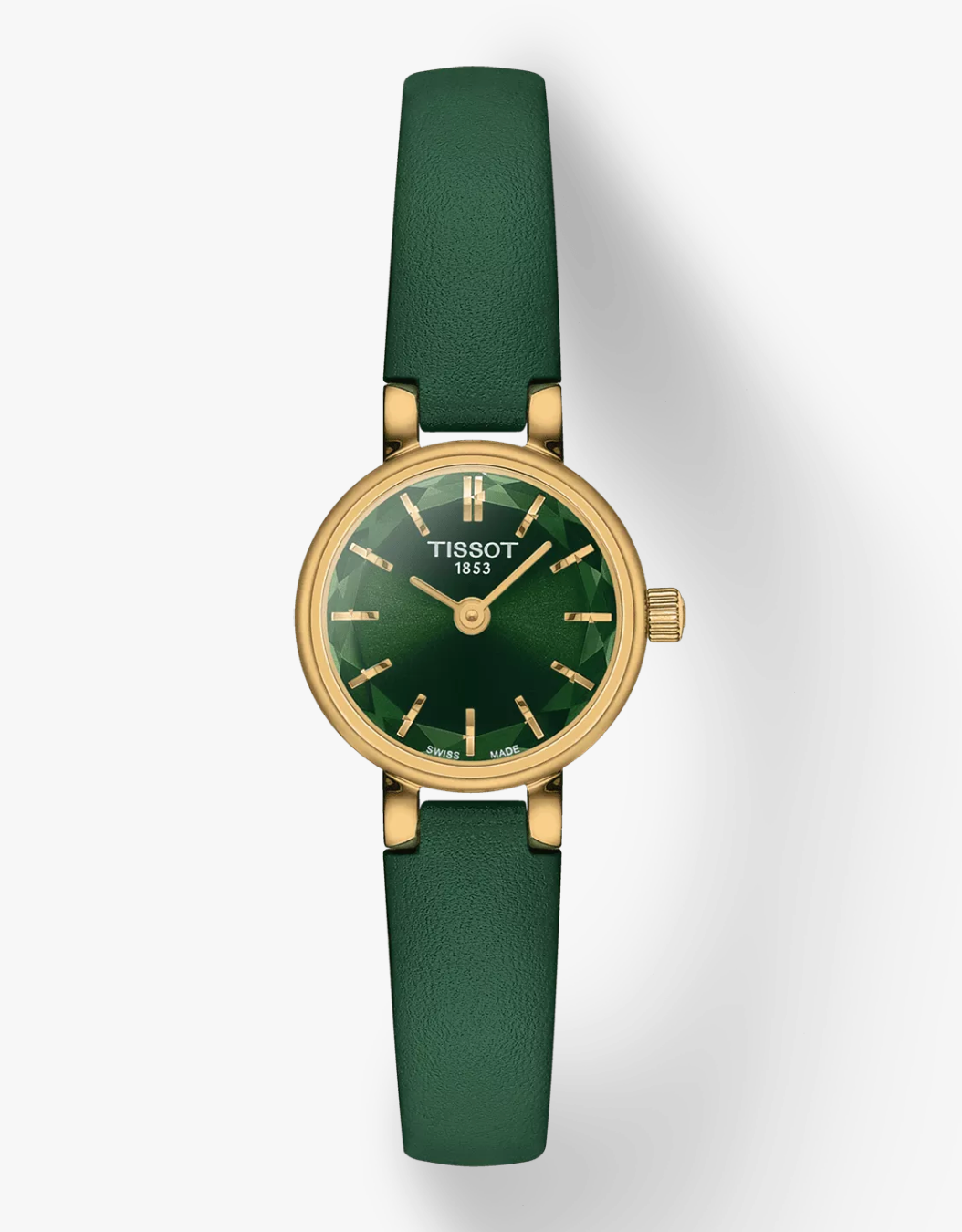 The Tissot Lovely is a feminine timepiece with a gorgeous, delicate small case, originally inspired from 1960s models. Its green sunray dial and facetted sapphire glass foster elegance and luminosity. In addition, the colorful leather bracelet made of comfortable and breathable material is an ideal fit for autumn.