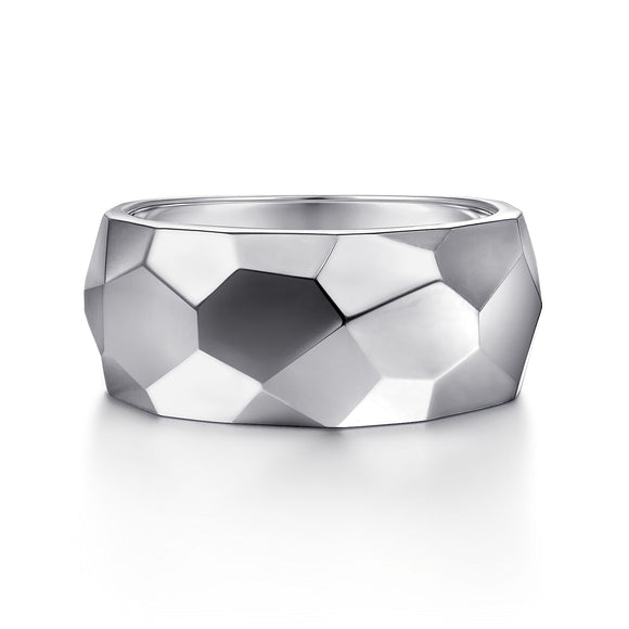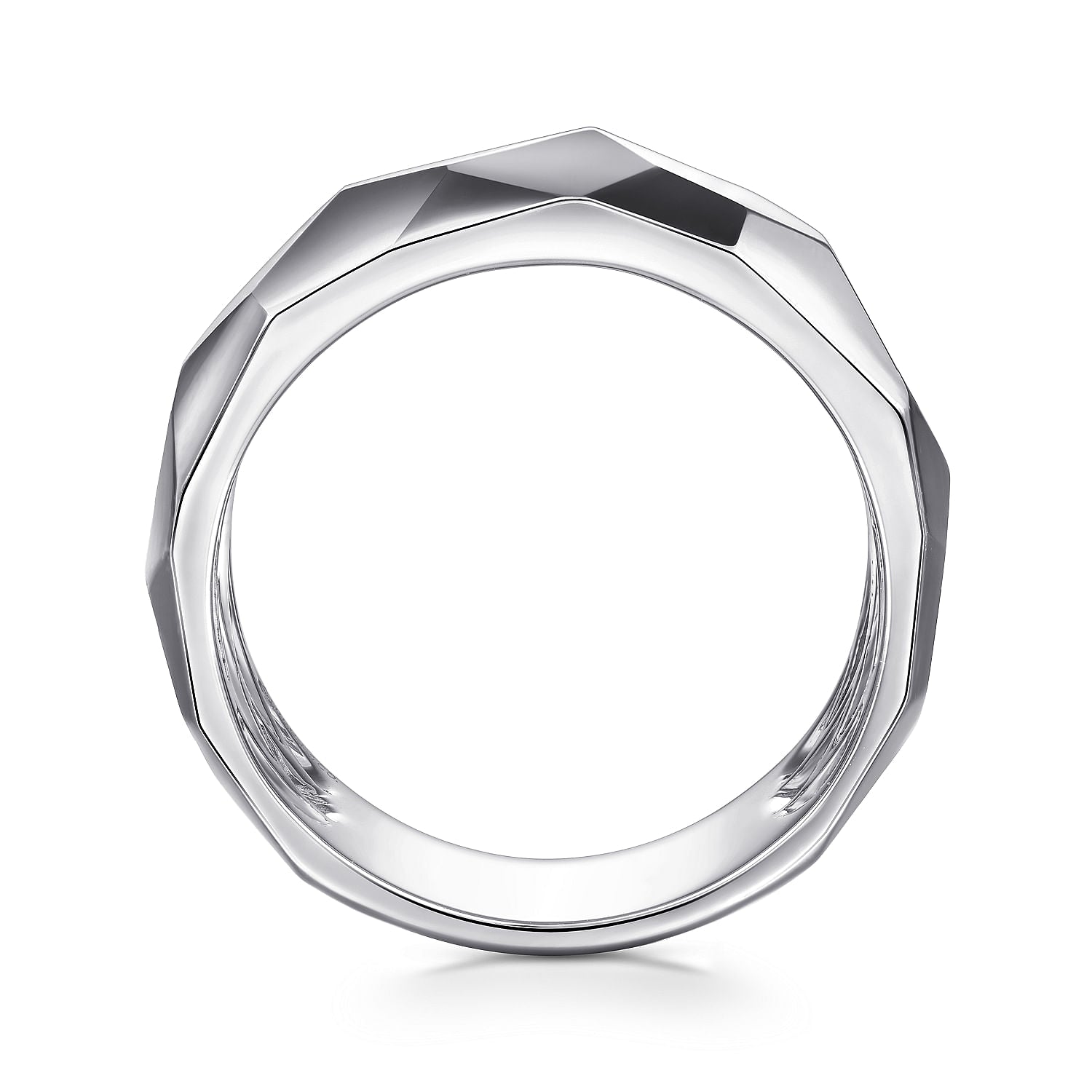 Wide 925 Sterling Silver Faceted Band in High Polished Finish